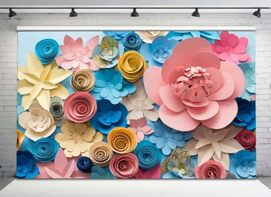 - Paper Flower Wall (you would never believe it is just material – looks like actual paper flowers in the photos)