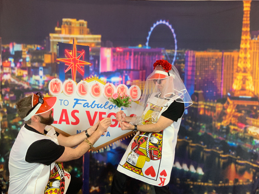 It’s been a year now since I first introduced the new concept of the Open Photo Booth and the response has been awesome. Guests love how there is a photographer who encourages them to have fun and get great photos and they also love getting the photos directly to their phones by airdrop. The more of these photo booths I do the more I am learning about ways to get the perfect photo and the trick seems to be to distract and have fun to capture that candid photo. We also have loads of props to suit every backdrop, and of course the most used backdrop is the Las Vegas Strip and Red Carpet Limo backdrops for the Casino Theme, and with these we supply wedding props so it looks like they have just got married in Vegas. I have even had one client fool their friends into thinking they got married in Vegas with the photo I of took of them, that’s how authentic the Vegas Backdrop looks.